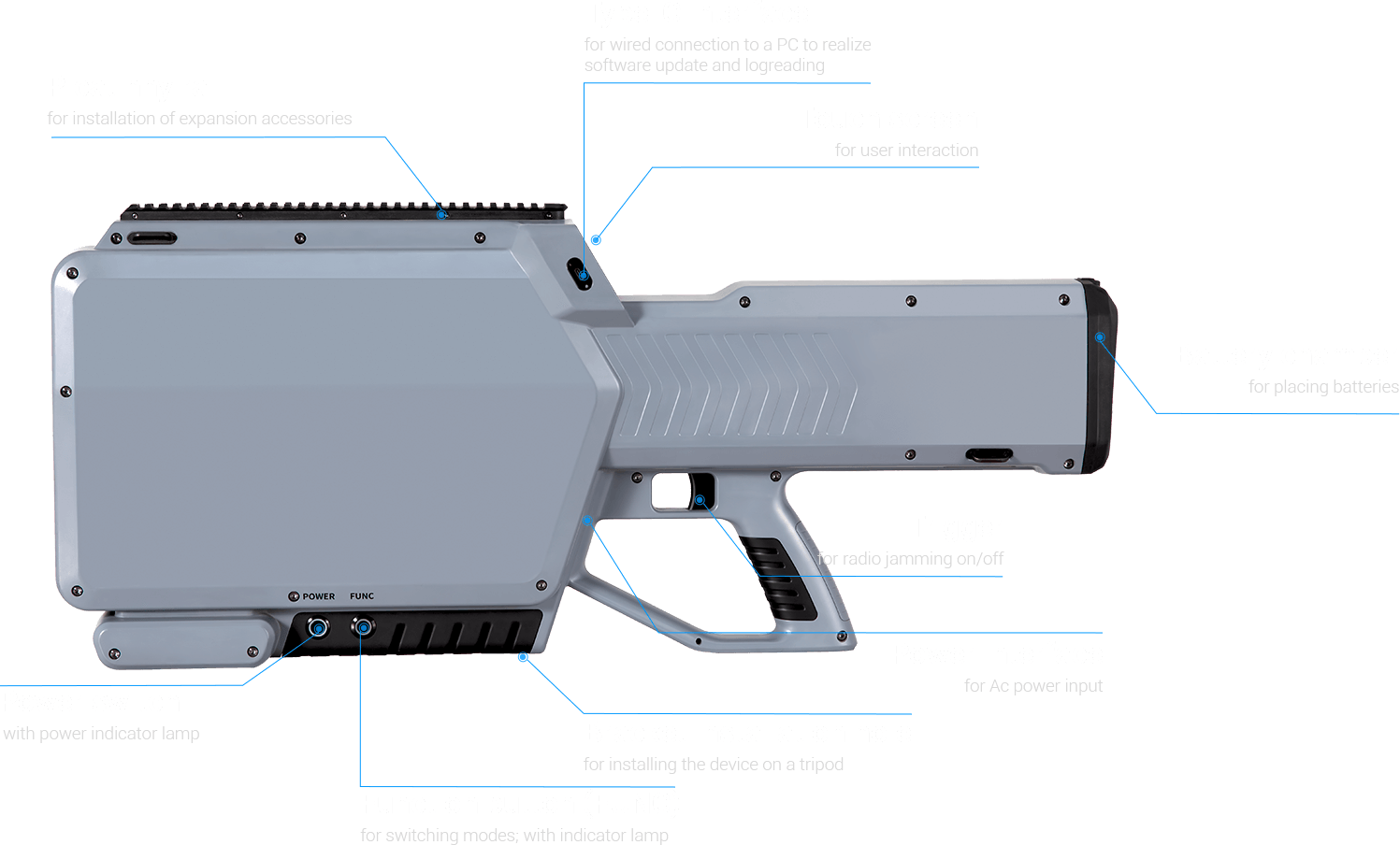 Hunter is a versatile handheld anti-drone jammer capable of effectively detecting, identifying, locating, and countering drone threats. It boasts strong countermeasure capabilities against mainstream drone types and models, and can disrupt both communication and navigation signals of multiple drones simultaneously. With a high degree of intelligence and user-friendly operation, Hunter is an ideal anti-drone solution for various scenarios such as public events and VIP security.