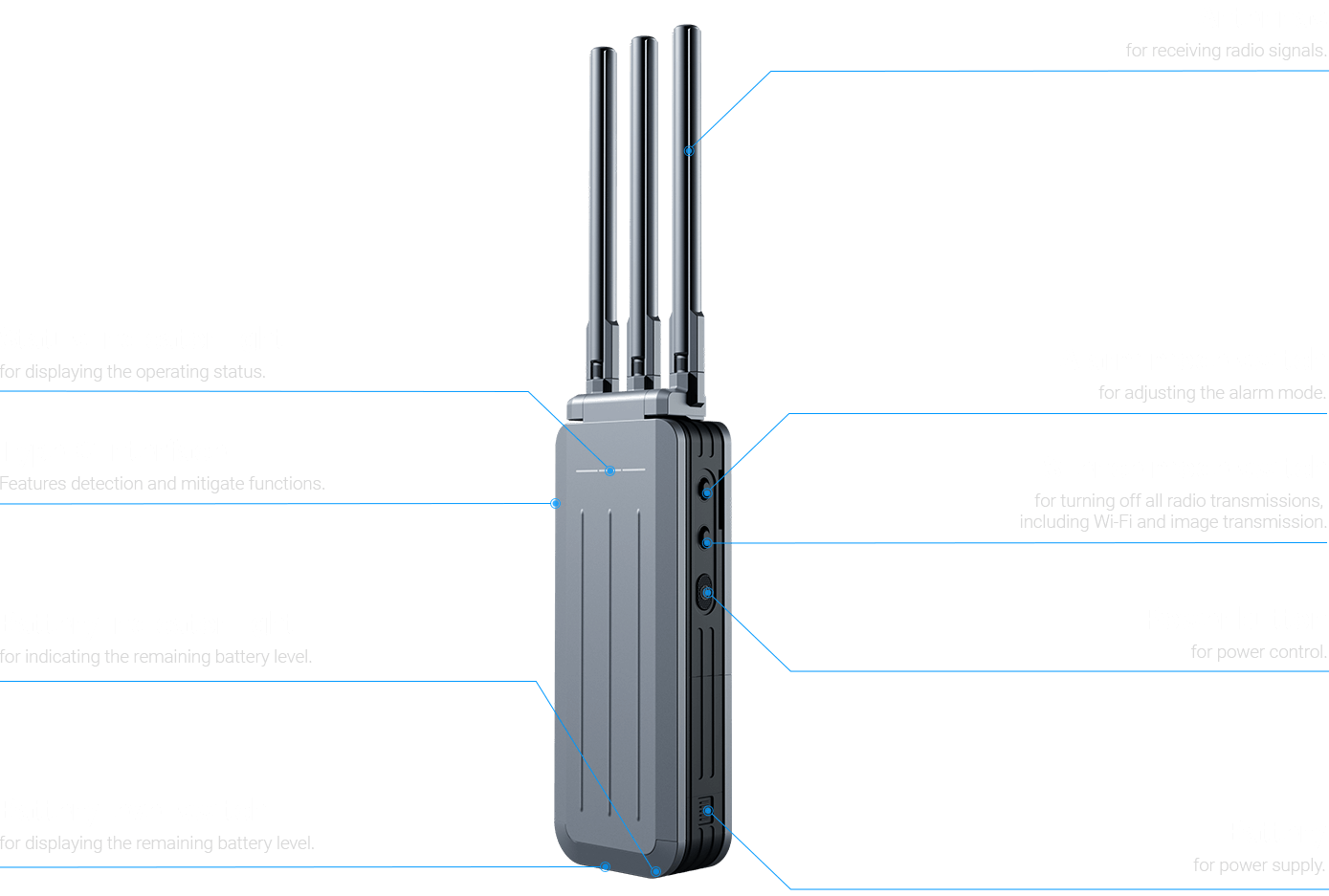 Tracer is a purpose-built device designed to monitor and manage aerial drone activity. It can accurately extract detailed information such as drone brand, model, serial number (SN), location, and operator position by decoding drone broadcast signals. Additionally, it employs advanced spectrum detection technology to detect, locate, and intercept signals from various types of drones. Its flexible customization capabilities enable users to quickly understand the electromagnetic landscape, respond to emerging threats in a timely manner, and safeguard critical sites and personnel.